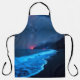 This apron features a captivating nighttime coastal scene with glowing blue waves that evoke the magic of bioluminescence. Dark cliffs rise in the background under a dramatic sky filled with clouds and faint stars, while red glows on the horizon add a mysterious touch. The striking contrast between luminous water and shadowed surroundings creates an atmospheric design that blends nature’s wonder with artistic flair. Perfect for cooking, baking, or crafting, this apron brings a sense of adventure and beauty to your kitchen. A unique gift for ocean lovers, dreamers, and fans of bold, imaginative art.
