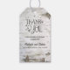 Rustic wedding thank you tags with birch bark texture