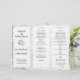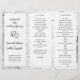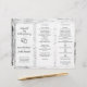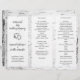 White birch wedding programs to fold into thirds. Perfect for a rustic, outdoor, wedding, the birch bark design has three panels of text. Fold accordion style with title, names and ceremony location, time and date on the front. The paper will open outward with the order of the ceremony in the centre panel. The list of the wedding party, with officiant, parents, musicians, readers, etc., is on the panel on the right. The reverse has a realistic birch bark image which is white with some grey.
