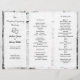 Birch bark folded wedding program. Country or outdoor wedding theme, with three sections of text. Create a tri-fold, or accordion fold, program for the ceremony. Two carved hearts design on the front above the couple's names. Rustic style in black and white.