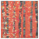 A painting of a birch or aspen tree forest in the autumn in rich tones of red, orange and yellow.