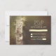 Charming rustic country wedding reply cards with old vintage birch tree and wooden bark love heart