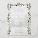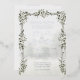 A soft and celebratory silver foil Chuppah wedding invitation featuring a foggy forest woodland background with a pure white birch tree Chuppah adorned with white anemones, peonies and roses with silver dollar eucalyptus greenery. Bride and Groom's parents invite the guests with your names in a classic modernized wedding script. The back of the invite resembles a book cover and features the Bride and Groom's surnames.