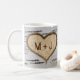 Birch tree heart initials rustic wedding favour coffee mug with a carved heart in the bark with your initials. This is perfect for your outdoor rustic country barn wedding. You can give these rustic mugs to the Maid/Matron of Honour, Best Man, Parents of the Bride, Parents of the Groom, and anyone else you choose. Colours of brown, dark brown, off white, tan, and black. You can customize the words on the cup to whatever you need. You can also replace or customize the images. Please see the matching collection on this page for other matching items for your special event.
