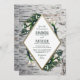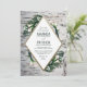 Birch Tree Rustic Woodland Calla Lily Wedding Invitations - features a rustic birch tree bark background with floral elements of fern, calla lily single flowers, baby's breath, leaves and more. The text box is an elegant triangle with a faux foil gold printed frame.