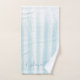 It was advertised as NAVY blue and the color sent was greenish blue. I am disappointed in this product. Quality and printing are great as are all my other orders. As you can see in picture the tea towel on right is perfect, hand towel not so much! Print was awesome and just as ordered