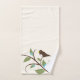 Bird birthday collection featuring a brown bird on a tree branch amidst leaves and bright blue flowers