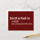 This funny birder design is formatted as a definition that would be found in the dictionary. Here the word is birdaholic and the definition is "one obsessed with birds." You might know some birders like that, or maybe you're a birdaholic yourself! You can totally customize this gift! Add text, change the colour, move the design around, pick a different style - make it your own!