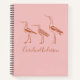 Personalized Notebook with Minimalist Blush Pink and Rust Brown Birds Line Art Drawing