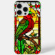 Vivid stained glass artwork featuring a bird amidst a nature-inspired setting, showcasing vibrant colours and intricate patterns.