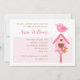 Cute 1st birthday invitation for girls, with cute pink bird & bird house.