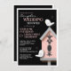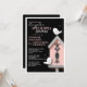 Two snowy white birds exchange tweets of love as they perch on their pretty pink and black damask birdhouse. A sweet image that makes a perfect Couples Wedding Shower invitation.