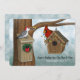 This pretty winter scene shows feathered neighbours sharing in the spirit of the season. The woodpecker is offering a sunflower seed to his cardinal friend, who is decorating his bird house. Personalize this card with your name and year. And you can add a photo to the back if you'd like.