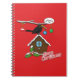 An illustration of a bird house with Christmas decorations of holly berries and hanging balls where a Blackbird is happily singing and wishes you a Merry Christmas. The roof is covered with snow. This design is made for winter holiday celebration and bird lovers.