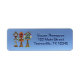 Three colourful cartoon bird houses against a blue gradient background makes this a very cute return label. Customizable name and address has the look of being raised.