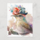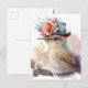 Bird in a Fancy Hat with Flowers Watercolor Postcard