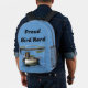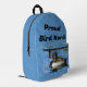 This backpack features a photo of a black and white duck with something to say. The main body of this backpack displays a bright blue colour that can easily be customized. "Bird Nerd" can also be personalized if you desire.