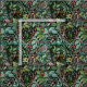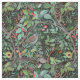 A seamless pattern of a lush, vibrant forest scene. The design showcases an array of foliage, flowers, and berries in rich green, red, and yellow hues, creating a dense and lively natural environment. Nestled among the leaves are charming birds, adding a touch of whimsy and life to the pattern. The artwork is meticulously detailed, with each leaf and petal carefully drawn, making it a perfect choice for textiles, wallpapers, and various decorative applications.