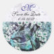 BIRD NEST Save The Date Monogram,White Teal Blue Classic Round Sticker