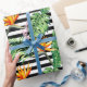 Tropical bird of paradise flowers and leaves on black and white stripes, this wrapping paper is beautiful for weddings, bridal shower, birthdays or any special occasion. MORE designs in our store.