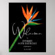 A tropical exotic bird of paradise watercolor flower with your party details in chic lettering accent this black Welcome poster. Change to any size. MATCHING items in our store.