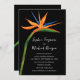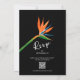 Tropical exotic bird of paradise watercolor flower on a black background makes a beautiful wedding invitation with an exotic flair. Your invitation on the front and RSVP QR code to your wedding website on the back. MATCHING items in our store.