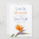Sauvez la date faire-part de mariage décoré d'oiseau orange vif de fleur de paradis. Le design simple et propre a cinq lignes de texte dans différents styles de police en bleu foncé et orange pour un moderne enregistrer la date. La date numérique est grande avec les prénoms du couple. Montré sur une mise à niveau papier, ou acheter la conception comme un téléchargement instantané.