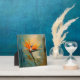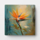 Closeup oil painting plaque of a bird of paradise plant.