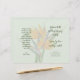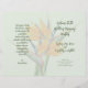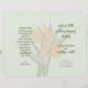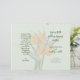 Folded wedding program template with orange bird-of-paradise flowers. Pale green paper with four pages to customize in script and printed dark green text. Include a message to family and friends on the last page / back of program when folded.