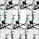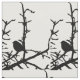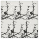 This contemporary fine art fabric design features a black and white modern abstract geometric pattern of a silhouette Dark-eyed Junco (Junco hyemalis) perched on a bare branch high in a tree. This bird is actually a kind of small, grey and white sparrow. You can easily customize the white background to any colour that will suit your project.