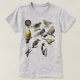 This T-Shirt includes a variety of bird species - Prothonotary Warbler, Magnolia Warbler, Ruby-crowned Kinglet, Barn Swallow, Ruby-throated Hummingbird, Red-headed Woodpecker, American Kestrel, Black-throated Green Warbler, Bay-breasted Warbler