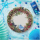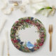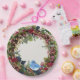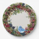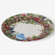 Bird & Wreath Party Plate - French country decor with a blue bird resting - garden colours of green, blue, pink, and warm red. The bird & wreath designs are also available on trivets, coasters, and napkins. Personalize each product as you wish.