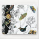 Birds and Butterfly on a Black & White Background Mouse Pad