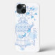 Modern birds on a cage drawing and graphic with blossom iphone case. A great gift idea for forever loves or for someone special on valentines day or an anniversary. Personalise with your name. This example reads: Bethany. Original design by Sarah Trett. www.sarahtrett.com