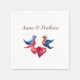 Colorful, lovely birds and hearts illustration , personalized paper napkins.Easy to add your names and background color.
