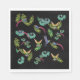Colourful birds, small hummingbirds digital art drawing, flying free among green leaves. Beautiful pattern for art and bird lovers.