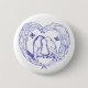 This is a line drawing in blue, of birds kissing, with a heart wreath around them