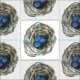 Acrylic painted birds nest with blue robin's eggs inside, repeat pattern fabric, art by Kristie Hubler
