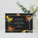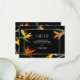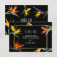 Birds of paradise, floral thank you cards. Dramatic black background with bright birds of paradise flowers. Additional coordinating tropical, modern wedding supplies are available at MetroEvents on Zazzle.