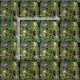 White and emerald green Peacocks, multi-colour Parrots and Pink Flamingos, among tropical exotic plants and rose, pink and white flowers