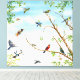 Bring the beauty of nature into your space with this serene canvas print featuring a variety of birds perched on branches and soaring gracefully through a lush forest. The detailed artwork captures the vibrant colours and lively movement of the birds against a backdrop of trees, creating a peaceful and enchanting scene. Perfect for bird lovers or anyone seeking to add a touch of natural elegance to their decor.