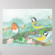 Enjoy a spring vigil! Tit Birds and Red Robins sing on a flowering branch. The time of the singing of birds has come. Nature and bird lover gift.