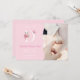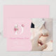 Cute pink baby announcement with letter D initial in white and pink. The initial is decorated with hand drawn florals and butterfly. This birth announcement is simple and yet elegant; it is perfect to announce the arrival of your little princess.