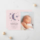 Cute birth announcement card with your own baby photos. The card features the shapes of moon and stars filled with pretty plaid pattern. Perfect for a sleeping baby picture. Under the moon and stars is where you can add your baby's names and birth stats. A second picture can be added to the back of the card along with the parents' names.