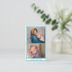 Front design features a place for up to two photos. Top image of blessed Virgin Mary may be left as is or replaced. Child's name is displayed at bottom in blue. Entire design is framed in blue. A white strip is featured across the front bearing child's name in blue.