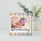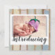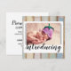 New born baby birth announcement elegant script one photo option card. Rustic Wood background. Easy to adjust template.