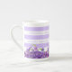The Flower-of-the-Month and Birthstone for February on a striped mug. The flower and gem pair for February is the Violet and the Amethyst. The mug has the meaning of the flower-of-the-month and birthstone. Add an optional monogramme - or delete that detail altogether.