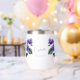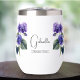 Birth month flower February Violet personalized wine tumbler featuring an illustrationof violet flowers. The custom name is written in a stylish script font above the flowers. Below the name, it states "February - Violet," indicating that birth month is February and birth flower is violet. It's a charming wine tumbler, customized as a special gift for someone born in February.