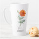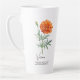 Birth month flower October Marigold latte mug featuring an illustration of a marigold flower. Below the flower, the name is written in an elegant script font. Beneath the name, it states " October - Marigold" indicating that the owner's birth month is September and her birth flower is the gladiolus. It is a personalized mug, customized as a thoughtful gift for someone born in October.