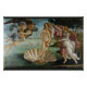The Birth of Venus by Sandro Botticelli, tempera painting on wood panel 1486, depicts the newly born Venus emerging from the sea as a woman riding atop a great sea shell to the shore. Flowers float in the winds blown by the flying figures that propel the goddess ashore, while a female figure welcomes her. The sinuous figure of Venus with long, flowing blonde hair, is adapted from the sculpture of classical antiquity, with its distinctive contrapposto pose of opposing S curves and shifting weight around a central axis. Botticelli’s masterpiece is an icon of the Italian Renaissance and western culture, and a complex metaphor for love, beauty and art.